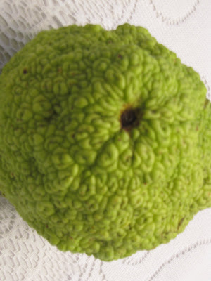 Hedge apples have always seemed a bit mysterious to me, like they didn't really belong here. Their bumpy skin reminds me of maps of the surface of distant planets or bad pictures of human brains.