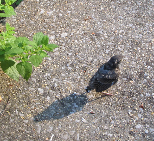When I bent down to pick him up, the mother and father robins darted from the tree where they had been watching their baby and starting yelling at me in bird talk. I realized then that they had been taking care of their babies just fine without me and they didn't need any help.